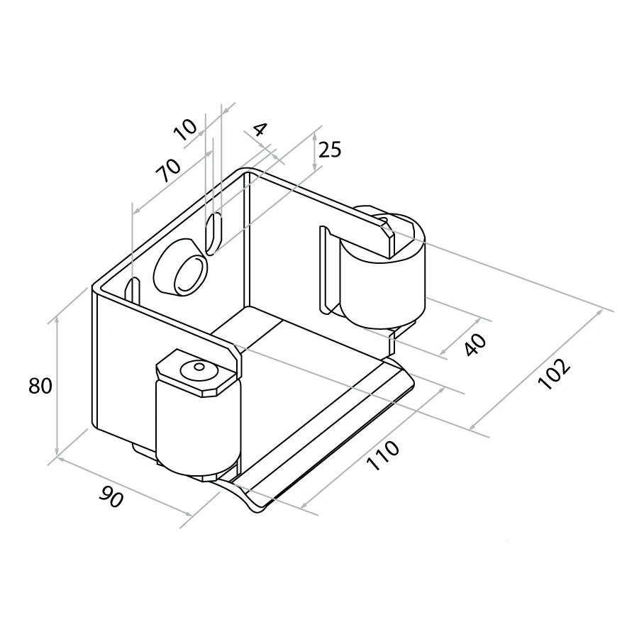 - Außenbreite (mit Rollenhaltern): 102 mm