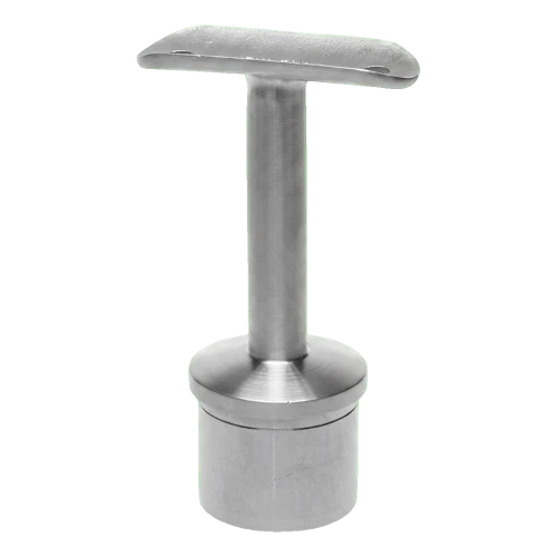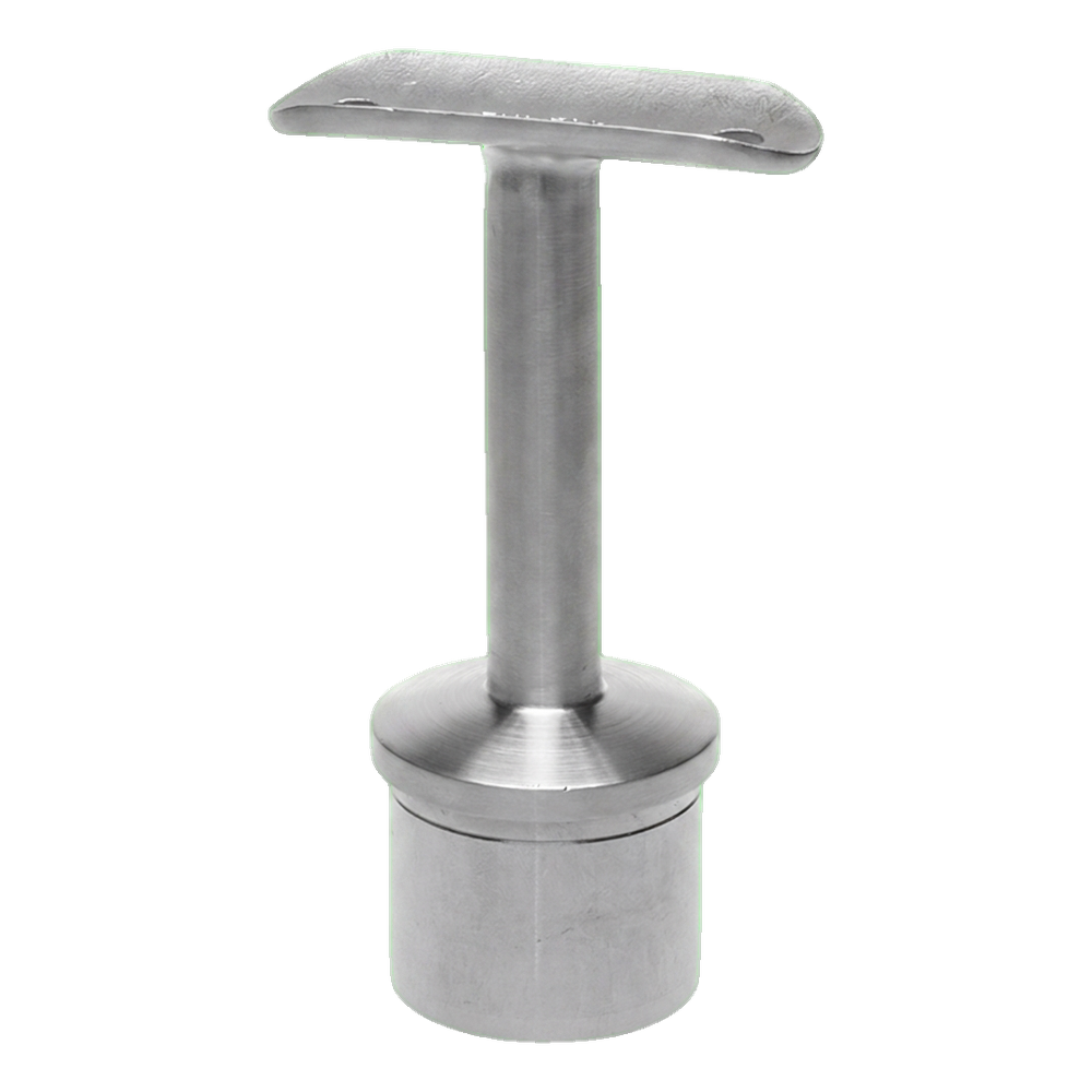 Geländerstütze zum Einkleben für Rohrbalustradensystem 42,4 mm. Verbindet Balustradenpfosten mit Handlauf und gewährleistet eine stabile und dauerhafte Verbindung ohne Verwendung von Klemmschrauben. Gefertigt aus Edelstahl AISI 304 mit polierter Oberfläche — garantiert ästhetisches Aussehen und jahrelange Korrosionsbeständigkeit, auch unter Außenbedingungen.