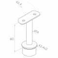 Stützensattel (obere Montageplatte) ist für Handlauf mit Durchmesser 42,4 mm profiliert und besitzt zwei Montagebohrungen für zusätzliche Verschraubung des Handlaufs. Die Sattelform gewährleistet gleichmäßige Anlage am Handlaufrohr über die gesamte Kontaktlänge.