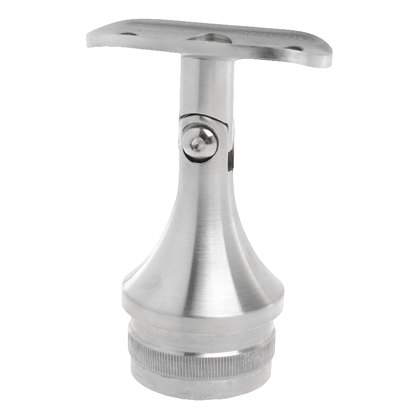 Gelenkstütze für Handlauf für Edelstahl-Geländersysteme, zum Einschlagen in Pfosten mit einem Durchmesser von 42,4 mm. Das verstellbare Gelenk ermöglicht eine stufenlose Einstellung des Handlaufneigungswinkels, was diesen Verbinder zur idealen Lösung sowohl für Treppengeländer als auch für Balkongeländer macht, die in verschiedenen Winkeln montiert werden.