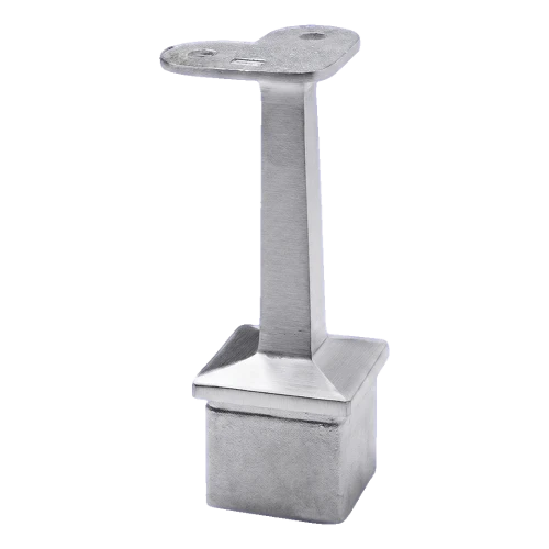 Gefertigt aus hochwertigem rostfreiem Stahl AISI 304 mit satinierter Oberfläche, harmoniert der Halter perfekt mit anderen Elementen von Edelstahl-Geländersystemen. Die satinierte Oberfläche ist kratzfest und pflegeleicht, was besonders in öffentlichen Gebäuden und Wohnanlagen von Bedeutung ist.