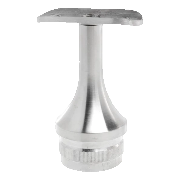 Die Stütze ist aus Edelstahl AISI 304 mit satinierter Oberfläche gefertigt, korrosionsbeständig und pflegeleicht. Die elegante, stromlinienförmige Form des Schafts verleiht dem Geländer einen modernen Charakter. Das Produkt eignet sich ideal für Innen- und Außengeländersysteme — an Treppenhäusern, Balkonen, Terrassen sowie in öffentlichen Gebäuden.