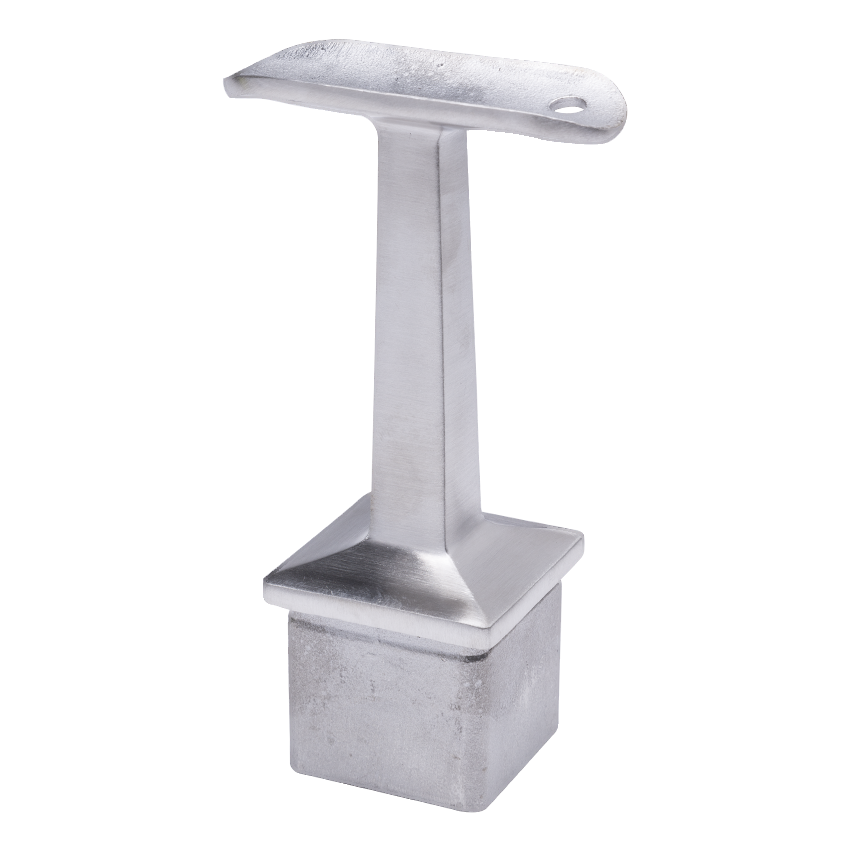 Handlaufträger PSG ist ein präzise gefertigter Verbinder aus Edelstahl AISI 304 mit satinierter Oberfläche, bestimmt zur Verbindung von quadratischen Pfosten 40×40 mm mit Handläufen mit einem Durchmesser von 42,4 mm. Das Element wird mittels anaerober Verklebung montiert – gewährleistet eine dauerhafte, ästhetische und unsichtbare Verbindung ohne Schweißen, was die Montage der Balustrade am Objekt erheblich beschleunigt.