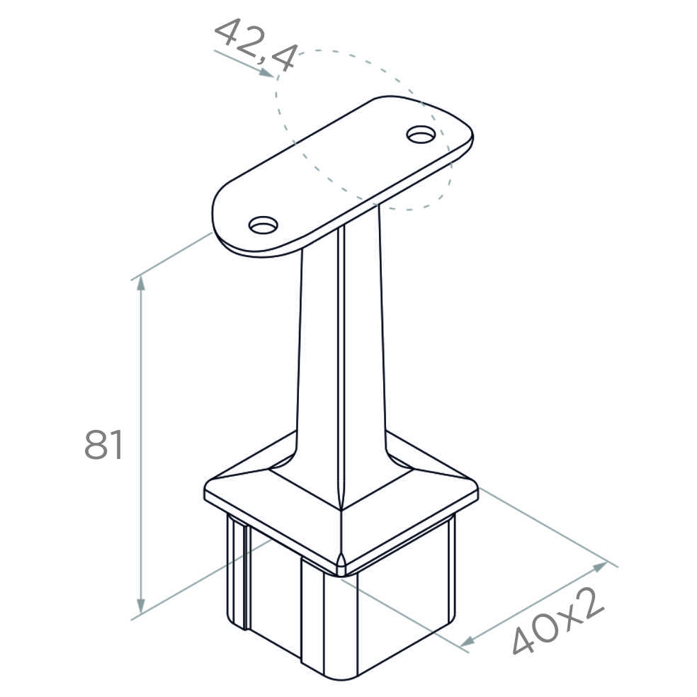 Produkt wird einzeln verkauft. Bestimmt für Edelstahlbalustradensysteme basierend auf quadratischen Profilen 40×40 mm mit rundem Handlauf Ø 42,4 mm.