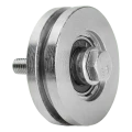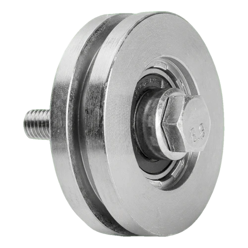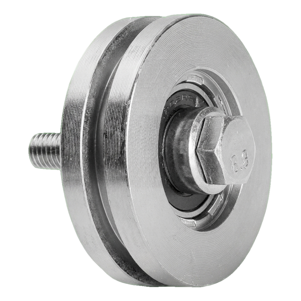 Die Rolle ist für die Verwendung mit T-Träger-Schienen bestimmt, die im Untergrund montiert werden — sie stellt das grundlegende Fahrelement von Schienen-Schiebetoren dar. Sie kann auch bei Hängetoren verwendet werden, bei denen der Torflügel an der oberen Schiene geführt wird. Die T-förmige Nut mit einer Breite von 6 mm gewährleistet sichere Führung auf dem T-Träger-Fuß und eliminiert seitliche Abweichungen des Torflügels während der Bewegung.