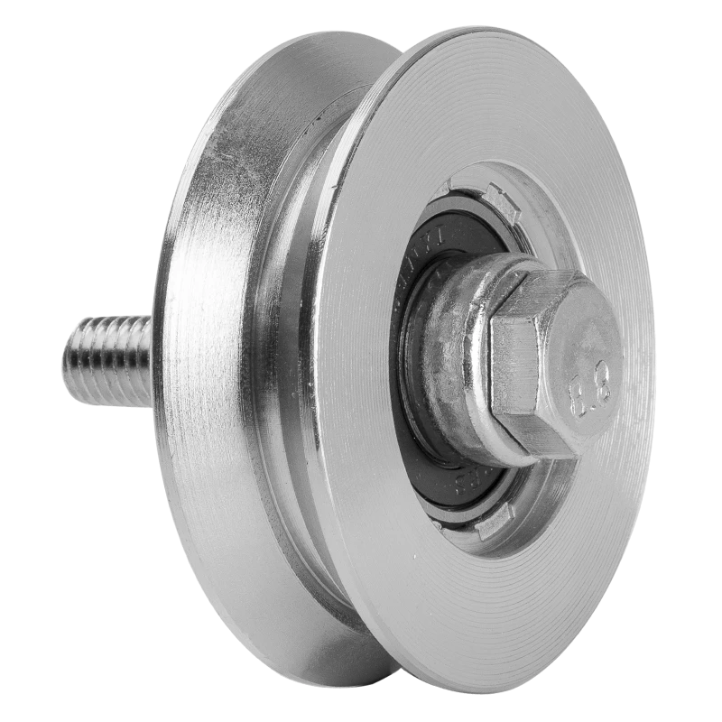 Die Rolle ist für die Zusammenarbeit mit Führungsschienen mit V-Profil bestimmt — einer Standardlösung bei Schienentoren. Das V-Nutprofil gewährleistet eine stabile Führung des Tores auf der Schiene und minimiert seitliche Abweichungen des Torflügels während der Fahrt. Die Tragkraft von 150 kg ermöglicht den Einsatz bei Toren mit moderatem Gewicht — sowohl in Anlagen bei Einfamilienhäusern als auch bei leichten Industrietoren.