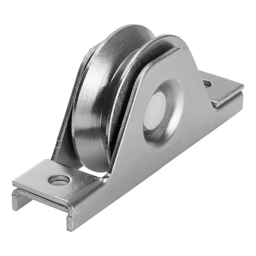 Die Rolle ist in einer Stahl-Montagehalterung mit Befestigungslöchern gelagert, was eine schnelle und stabile Montage direkt im Torrahmen ermöglicht. Das V-förmige Nutprofil gewährleistet eine präzise Führung auf der Laufschiene, minimiert seitliche Spiele und eliminiert unkontrollierte Bewegungen des Torflügels beim Öffnen und Schließen. Im Lieferumfang befinden sich Montageschraube und innere Stütze, sodass der Installateur einen kompletten Montagesatz ohne zusätzliche Komponenten erhält.