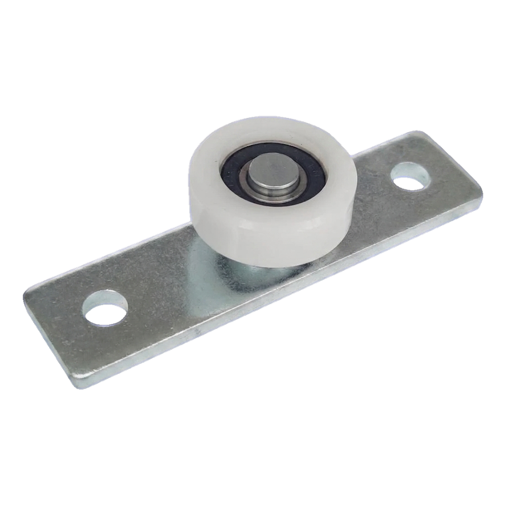 Nylon-Führungsrolle ø40 mm mit Montageplatte ist ein stabilisierendes Element für den Betrieb von Hängtoren. Die Rolle aus weißem Nylon ist auf einem Lager montiert, was geringen Rollwiderstand und leisen Betrieb des Mechanismus gewährleistet. Die Montageplatte aus verzinktem Stahl mit einer Dicke von 6 mm garantiert eine dauerhafte und korrosionsbeständige Befestigung.