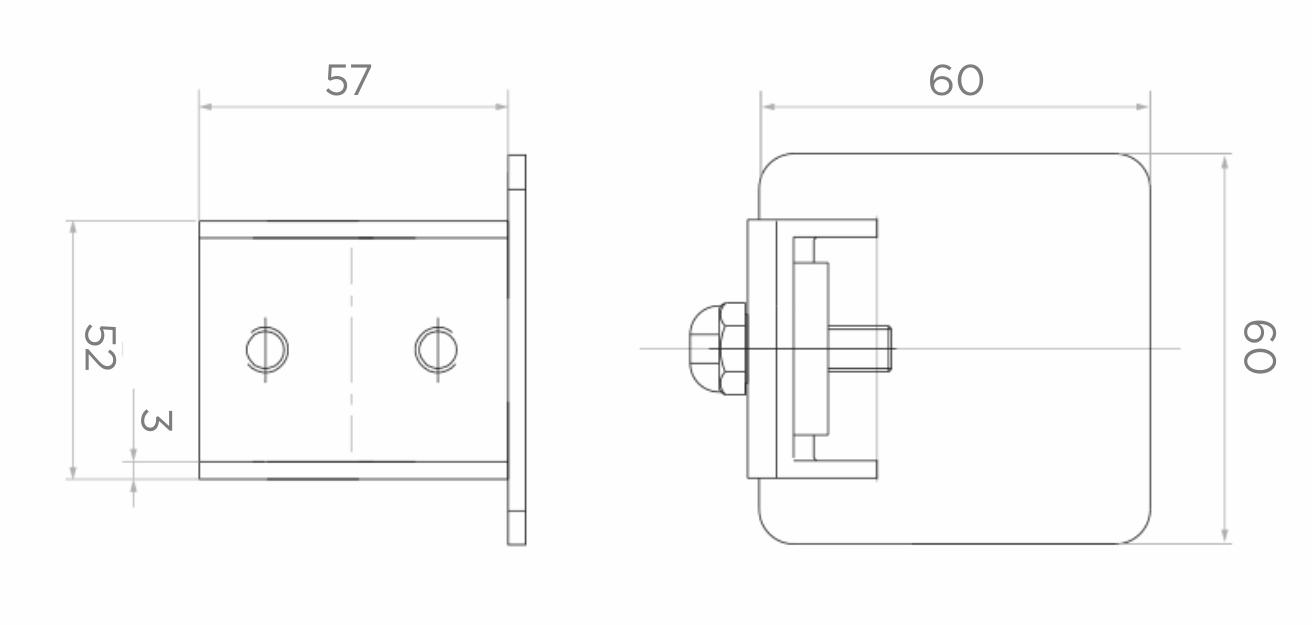 - Stirnplatte (Abdeckung): 60×60 mm