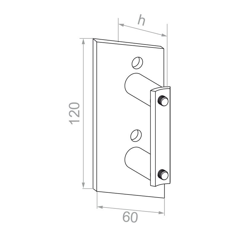 - Abmessungen der Montageplatte: 120 × 60 mm