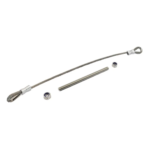 Die Ausführung aus Edelstahl garantiert vollständige Korrosionsbeständigkeit — das Seil behält seine Eigenschaften während der gesamten Betriebsdauer des Tores bei, auch unter schwierigen Witterungsbedingungen. Die selbstsichernden Muttern gewährleisten eine dauerhafte Verbindung, die sich nicht unter dem Einfluss von Vibrationen und dynamischen Belastungen lockert. Die Montage ist schnell und erfordert keine Spezialwerkzeuge, was die Ausführungszeit des Auftrags verkürzt.