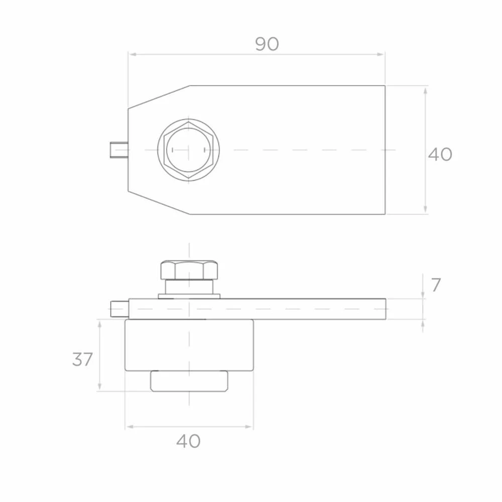 Die kompakten Abmessungen (90 × 40 × 7 mm Platte + Hülse ø40 × 37 mm) erleichtern die Montage an typischen Pfosten und Zaunrahmen. Die Stahlkonstruktion ermöglicht das Schweißen oder Verschrauben des Elements an der Tragkonstruktion, was dem Installateur Flexibilität bei der Wahl der Montagemethode je nach Baustellenbedingungen bietet.