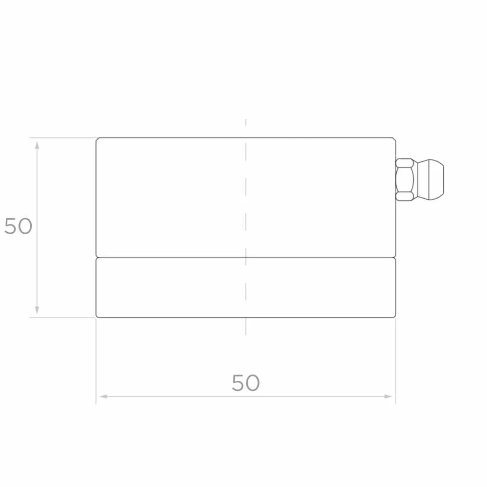 Das Scharnier wird als unteres Element montiert — es bildet die Drehachse, die im Torpfosten befestigt wird und mit dem oberen Scharnier zusammenarbeitet. Die zylindrische Form mit einem Durchmesser von fi 50 mm gewährleistet Kompatibilität mit gängigen Scharniersystemen, die in Flügeltoren und Gartentoren verwendet werden.