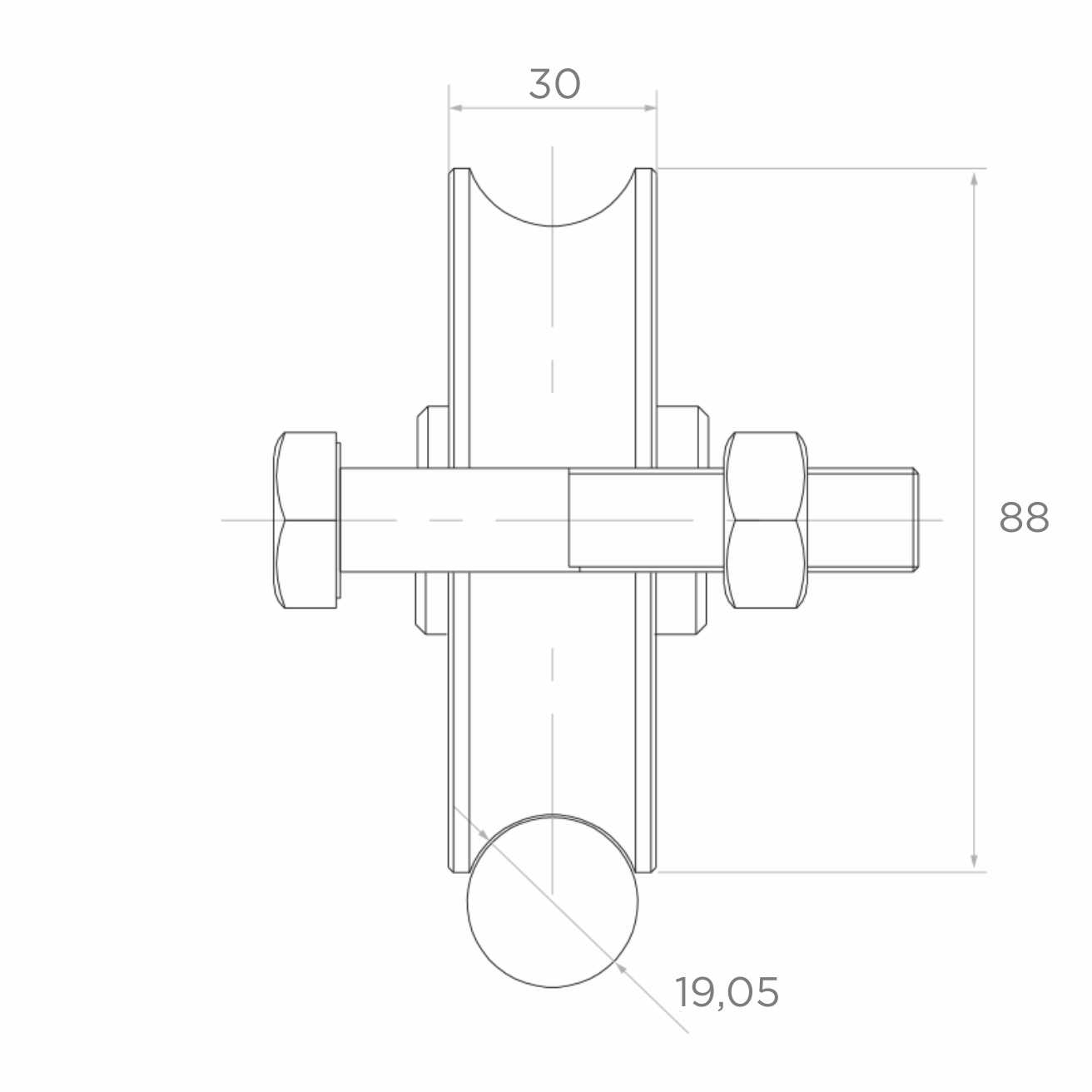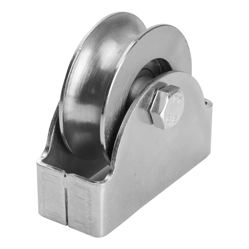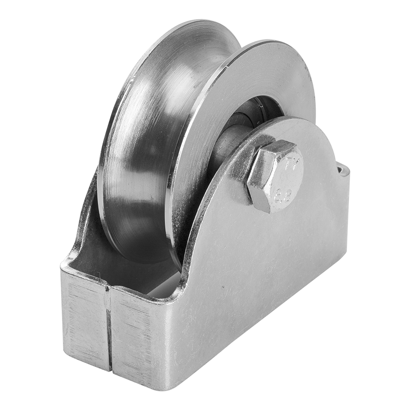 Die Rolle ist für die Verwendung mit runden Schienen (Rohren) mit einem Durchmesser von 3/4" (19,05 mm) vorgesehen. Das Rillenprofil Typ 'O' gewährleistet sichere Auflage auf der Schiene und minimiert seitliche Verschiebungen des Torflügels während der Fahrt. Die solide Stahlfassung mit massiver Achsschraube garantiert dauerhafte Befestigung im Schiebetor-Rahmen.