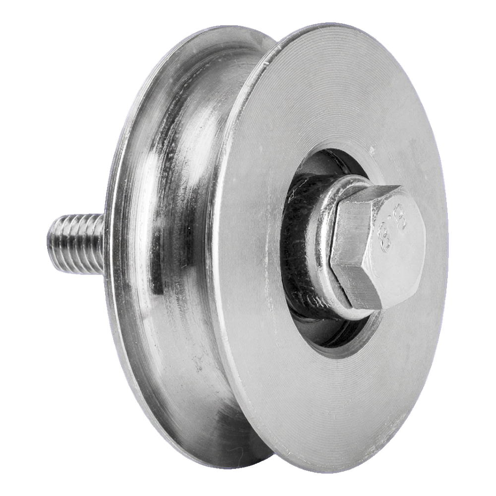 Stahl-Torrolle Typ 'O' für schienengeführte Schiebetore. Die Rolle mit 70 mm Durchmesser arbeitet mit Rundschienen (Rohren) zusammen und gewährleistet eine ruhige, leise Fahrt des Torflügels. Dank der verzinkten Oberfläche ist das Element korrosionsbeständig und für jahrelangen Außeneinsatz geeignet. Im Lieferumfang ist eine Montageschraube enthalten, so dass sofort mit der Installation begonnen werden kann, ohne separate Verbindungselemente auswählen zu müssen.