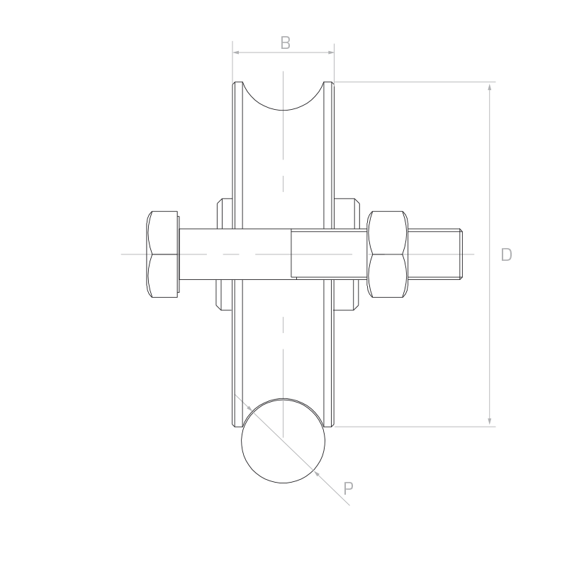 In der technischen Zeichnung entspricht die Bezeichnung D dem Außendurchmesser der Rolle, B – der Nutbreite und P – dem Durchmesser der Rundschiene, mit der die Rolle zusammenarbeitet. Bei der Rollenauswahl ist darauf zu achten, dass der Durchmesser der Fahrschiene dem Nutprofil entspricht.