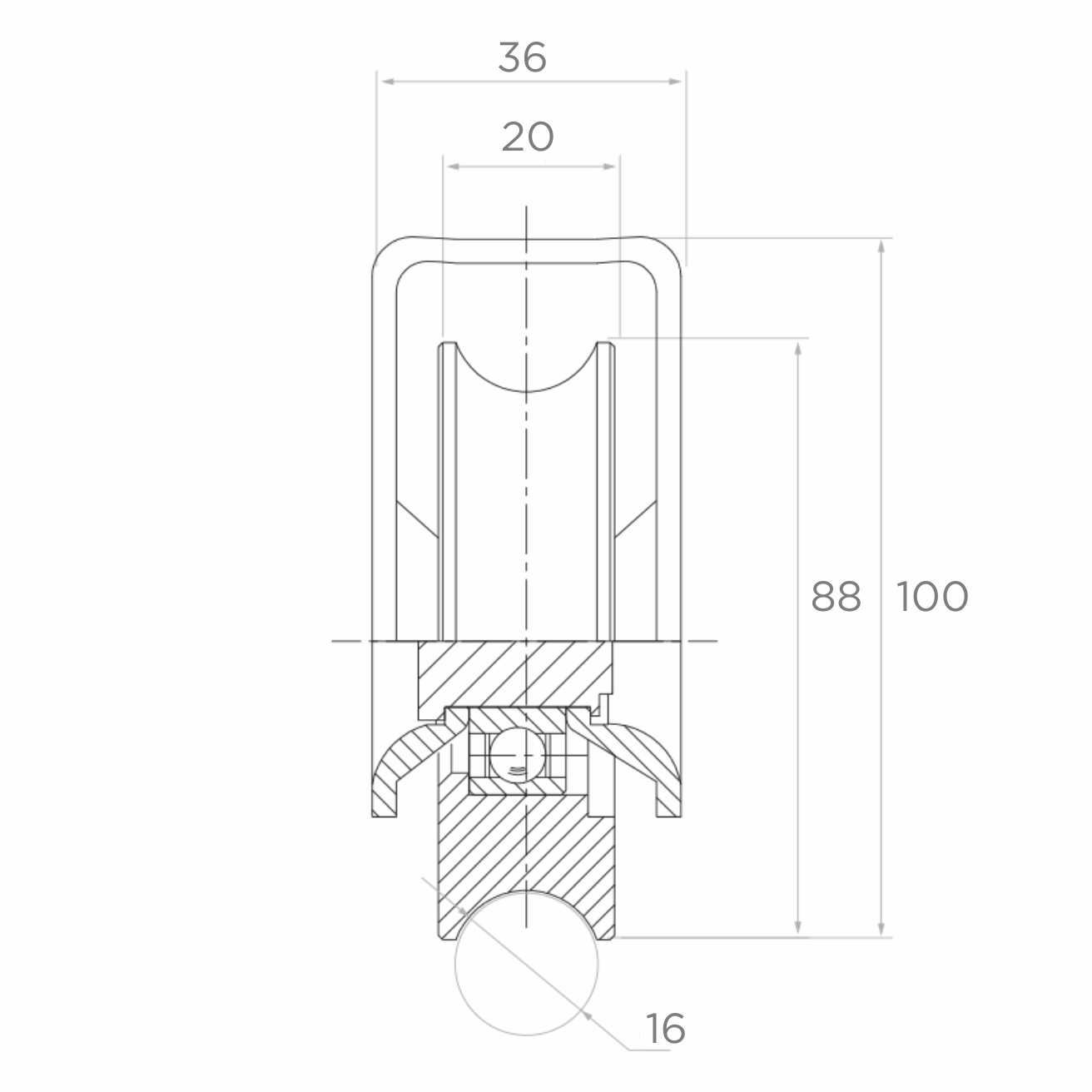 PSG Torrolle V-Nut Ø 88 mm mit Halterung – für Schienenlauftor