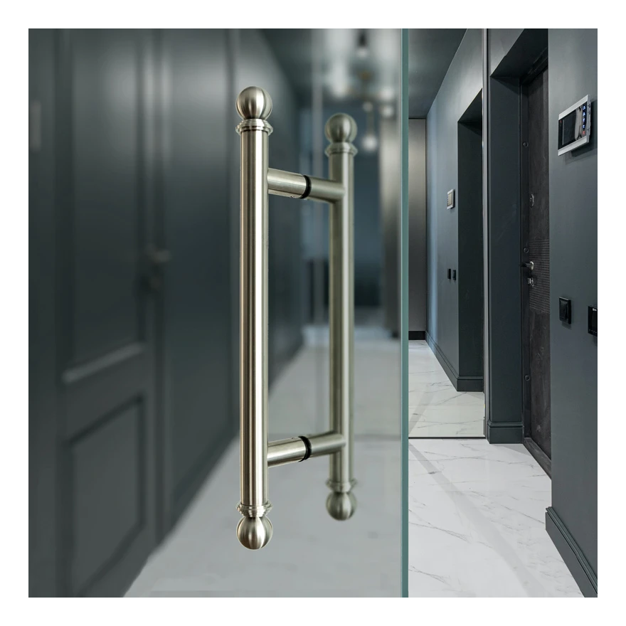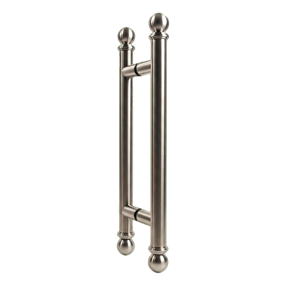 Der beidseitige Türgriff PSG ist ein eleganter Türgriff mit klassischem Design, vollständig aus hochwertigem Edelstahl AISI 304 in satinierter Ausführung gefertigt. Die dekorativen Kugelabschlüsse verleihen ihm einen stilvollen, repräsentativen Charakter — ideal für Gewerbeobjekte, Büros, Hotels und exklusive Wohnräume.