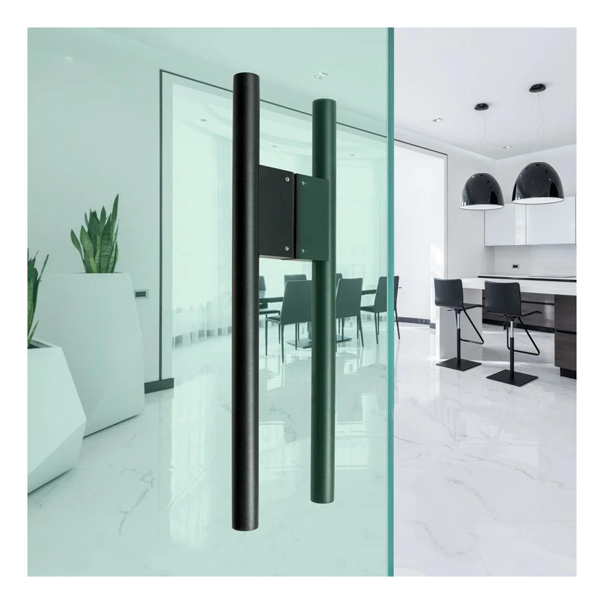 Der beidseitige Türgriff PSG in der Farbe schwarz matt ist eine elegante und ergonomische Lösung für Vollglastüren, Holz- und Metalltüren. Vollständig aus hochwertigem Edelstahl AISI 304 gefertigt und mit einer dauerhaften matten Beschichtung versehen, gewährleistet er ein ästhetisches Erscheinungsbild und Widerstandsfähigkeit gegen tägliche Beanspruchung in gewerblichen und Bürogebäuden.