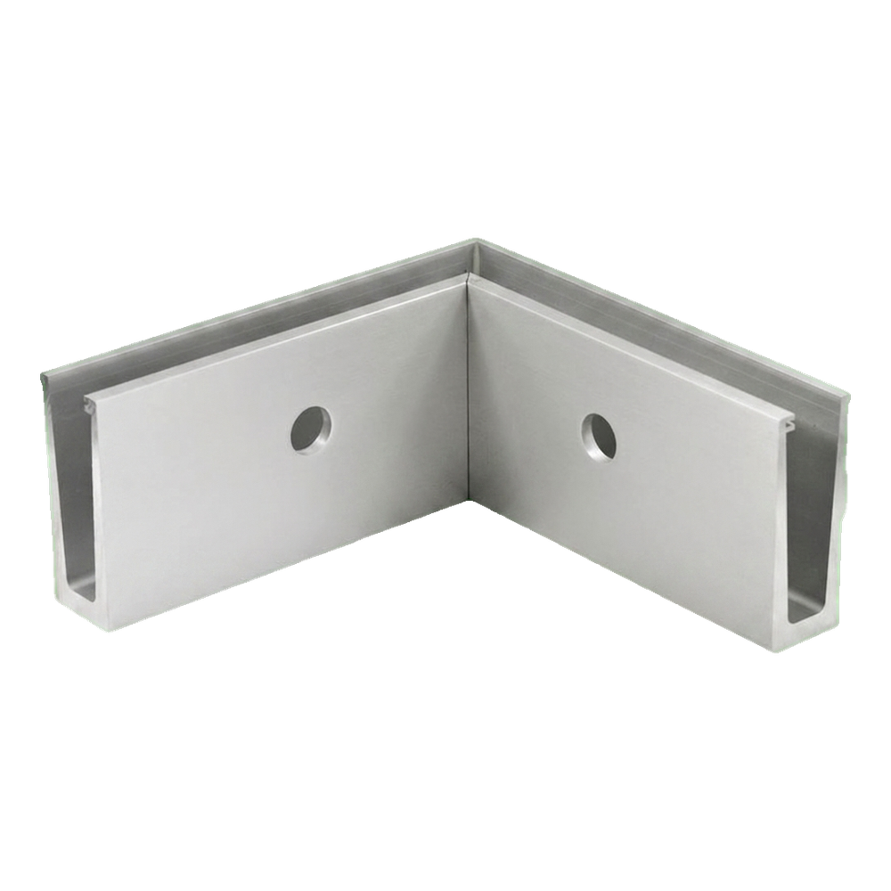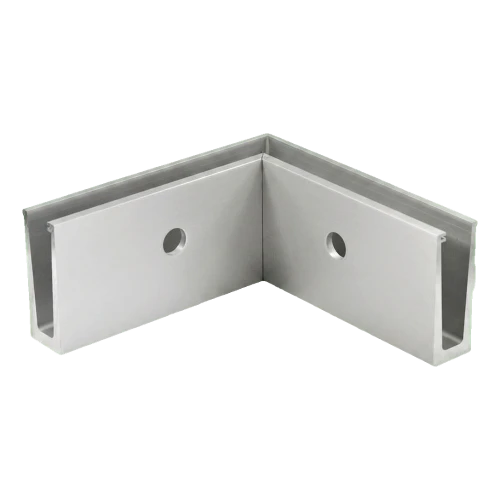 PSG U-Profil Innenecke 90° für randlose Glasgeländer – Wandmontage, Aluminium roh