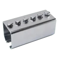 Der Verbinder hat die Form einer Stahlauflage, die das Schienenprofil von beiden Seiten umfasst, was eine steife und stabile Verbindung auch bei hoher Torbelastung garantiert. Sechs gleichmäßig über die Länge von 160 mm verteilte Schrauben sorgen für angemessenen Anpressdruck und eliminieren das Risiko des Lösens der Verbindung während des Betriebs. Die verzinkte Beschichtung schützt das Element vor Korrosion, wodurch sich der Verbinder sowohl in Innenhallentoren als auch in feuchtigkeitsexponierten Anwendungen bewährt.