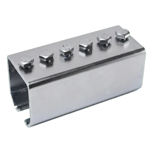 Verzinkter Schienenverbinder für Hängetore der Marke PSG, bestimmt zum Verbinden von U-Profil-Abschnitten (Laufschiene) mit Profil 45×46 mm. Ermöglicht eine schnelle und sichere Verbindung aufeinanderfolgender Schienensegmente und gewährleistet die Kontinuität der Laufbahn für Torwagen. Das Komplettset wird zusammen mit 6 Befestigungsschrauben geliefert — bereit für sofortige Montage ohne die Notwendigkeit, zusätzliche Verbindungselemente zu beschaffen.