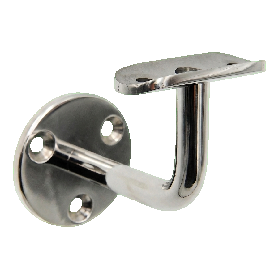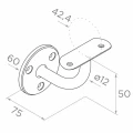 Die obere Platte mit Montagelöchern bildet eine stabile Stütze für den Handlauf, und der profilierte Arm mit Durchmesser ø12 mm garantiert Steifigkeit und sichere Befestigung. Die polierte Oberfläche des Edelstahls ist extrem pflegeleicht — die meisten Verschmutzungen entfernen Sie mit einem trockenen weichen Mikrofasertuch, und fettige Flecken mit einem speziellen Edelstahlreiniger.
