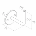 Der Halter verfügt über keine Montageplatte — der Handlauf wird über ein M6-Gewinde mit dem Arm verbunden. Dies ist eine universelle Konstruktion, die sich sowohl im Wohnungsbau als auch in öffentlichen Gebäuden bewährt.