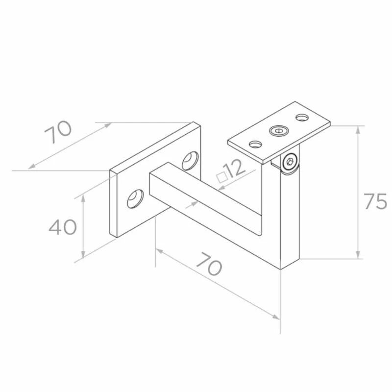Das mit einer Inbusschraube A2-70 befestigte Gelenk ermöglicht eine stufenlose Winkelregulierung der oberen Platte relativ zum Halterarm. Nach Einstellung der richtigen Handlaufneigung genügt es, die Schraube anzuziehen, um die Position dauerhaft zu fixieren. Dies beschleunigt die Montage von Treppengeländern erheblich — der Installateur muss keine Elemente winklig zuschneiden oder zusätzliche Winkelstücke verwenden.