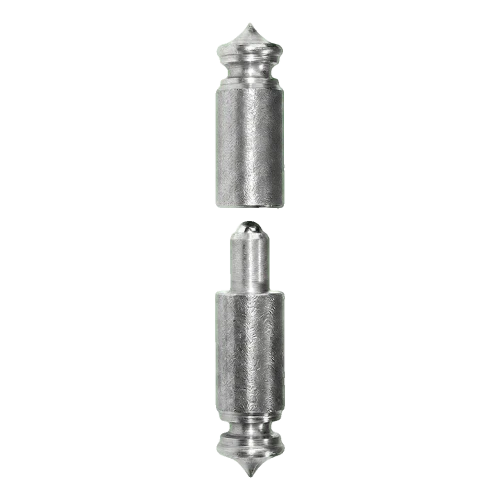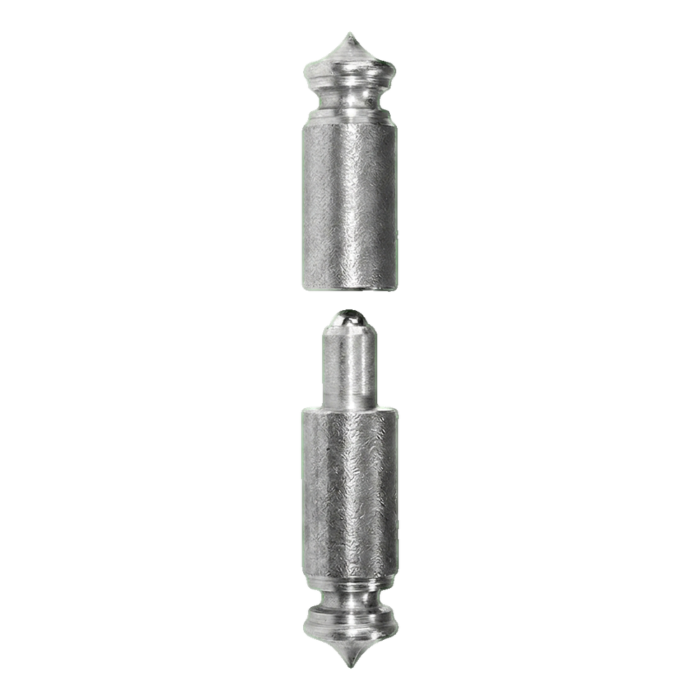 Das Scharnier besteht aus zwei geschweißten Teilen — dem oberen (mit Kugel) und dem unteren (mit Aufnahme). Vor dem Anschweißen der Elemente an die Torkonstruktion oder den Pfosten muss deren Ausrichtung präzise eingestellt werden. Nach dem Schweißen werden beide Teile durch Aufsetzen eines auf das andere verbunden und bilden eine stabile und dauerhafte Drehkonstruktion.