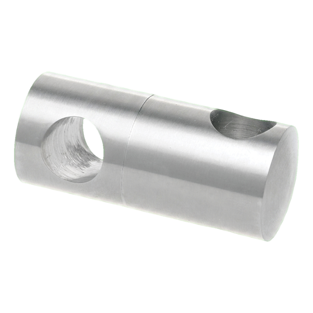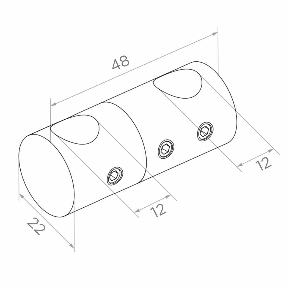 Universeller doppelter Durchgangshalter zur Montage von zwei Rohren oder Stäben mit einem Durchmesser von 12 mm zwischen Geländerpfosten. Dank der kompakten, zylindrischen Konstruktion mit drei Klemmschrauben gewährleistet das Element eine sichere und dauerhafte Befestigung der Füllungen — ohne Schweißen erforderlich. Ideale Lösung für moderne Geländer mit horizontaler Füllung.