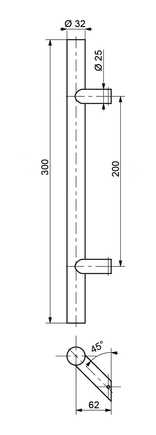 Einseitiger Türgriff PSG mit einer Länge von 300 mm und einem Rohrdurchmesser von 32 mm, gefertigt aus Edelstahl AISI 304 in satinierter Ausführung. Dank der soliden Konstruktion und Korrosionsbeständigkeit bewährt er sich überall dort, wo langjähriger störungsfreier Betrieb erforderlich ist — in Bürogebäuden, öffentlichen Einrichtungen, Schulen und Institutionen mit hohem Verkehrsaufkommen.