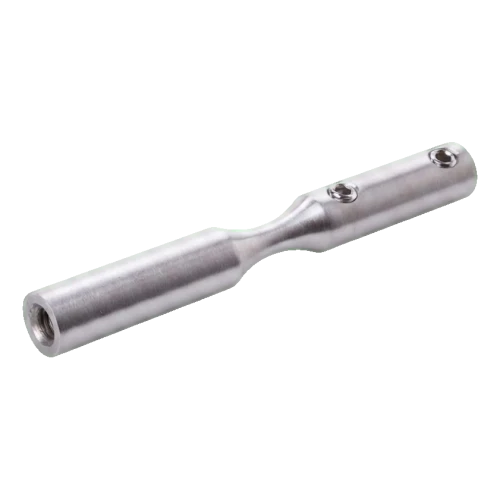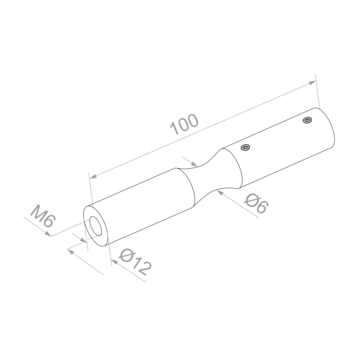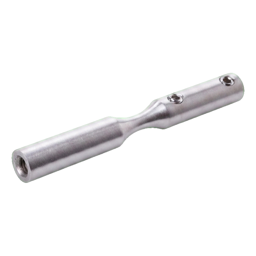 Das Element aus Edelstahl AISI 304 mit satinierter Oberfläche gewährleistet hohe Korrosionsbeständigkeit und ein ästhetisches, dezentes Erscheinungsbild. Die Montage erfolgt durch Einschrauben — die Halterung ist mit M6-Gewinden und Sperrbohrungen (Ø6 mm) ausgestattet, was eine stabile und dauerhafte Verbindung mit dem Seil und der Tragkonstruktion garantiert.