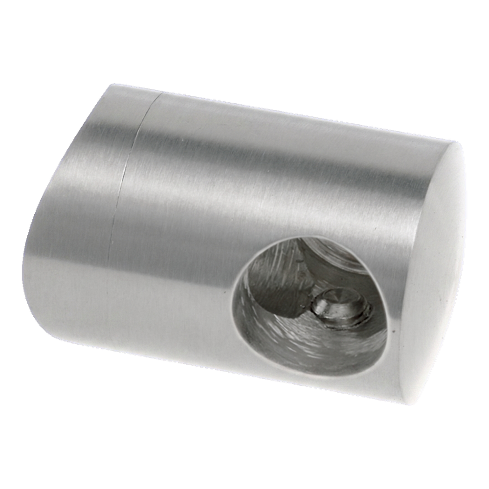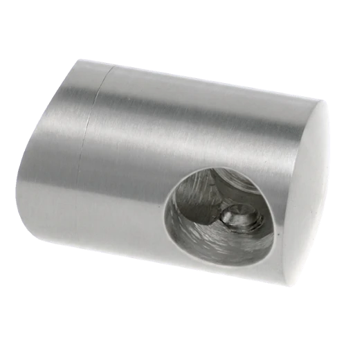 Linker Endhalter (Starthalter) zur Montage von Stäben mit Durchmesser fi 16 mm auf Tragerohr fi 42,4 mm. Dient als Anfangs- oder Endelement der Stabfüllung in Edelstahlbalustraden. Gefertigt aus Güte AISI 304 mit satinierter Oberfläche — gewährleistet hohe Korrosionsbeständigkeit und ein ästhetisches, mattes Aussehen, das mit den übrigen Elementen des Balustradensystems 42,4 mm harmoniert.