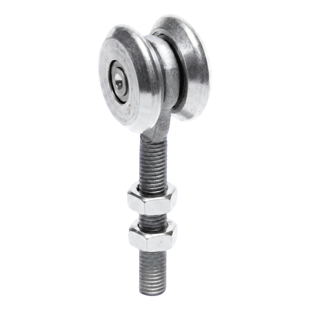 Die maximale Tragfähigkeit von 60 kg ermöglicht den Einsatz bei Toren mit moderatem Gewicht. Der Gewindestift M12 mit zwei Muttern ermöglicht eine präzise Höhenverstellung der Torflügelaufhängung, was die Montage und Justierung der gesamten Konstruktion erheblich beschleunigt.