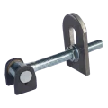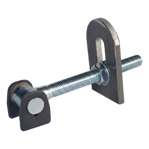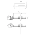 Der Bandstift ist verzinkt, was Korrosionsbeständigkeit und langanhaltende Funktion unter wechselnden Witterungsbedingungen garantiert. Auge und Verbinder sind aus schwarzem Stahl gefertigt – ein Element, das für die Lackierung oder Montage in geschützten Konstruktionen vorgesehen ist.