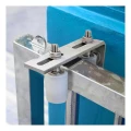 Die Führung wird am Pfosten oder an der Mauer mittels einer seitlichen Montageplatte mit Langlöchern montiert, die eine präzise Positionseinstellung ermöglichen. Langlöcher im Montagearm erleichtern die Ausrichtung der Führung zum Tor, und die Verstellung des Rollenabstands erlaubt eine schnelle Anpassung an die Profildicke des Flügels — die gesamte Montage dauert nur wenige Minuten.