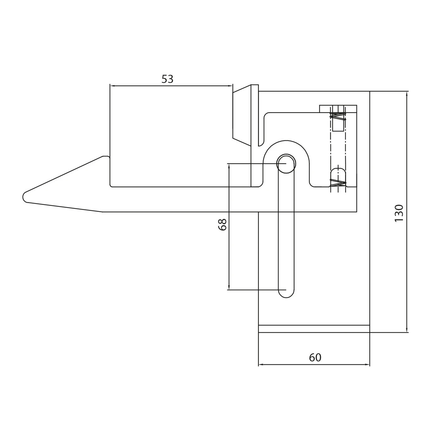 - Länge des Fangstücks (Anschlagelement): 50 mm (Konstruktionsmaß 53 mm)