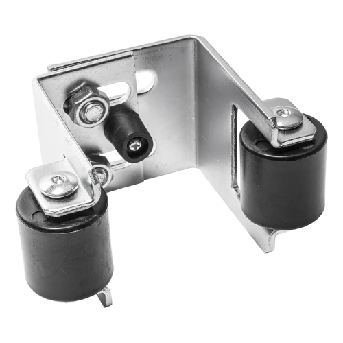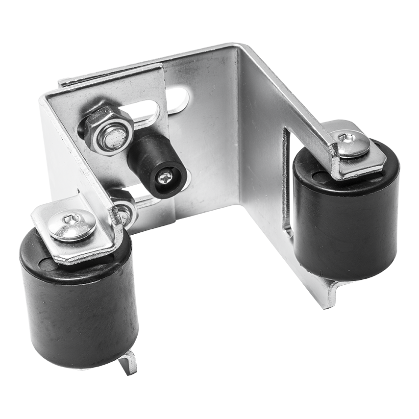 Der Halter wird im oberen Bereich der Toröffnung (am Sturz oder Pfosten) montiert. Nach dem Schließen des Tores läuft der Flügel zwischen die Rollen, die ihn seitlich stabilisieren und Schwingungen durch Wind verhindern. Die Abstandsverstellung ermöglicht präzise Anpassung an die Dicke des jeweiligen Flügels im Bereich von 55 bis 90 mm — es genügt, die Befestigungsschrauben zu lösen, den gewünschten Abstand einzustellen und wieder anzuziehen. Die Universalität dieses Elements macht es zu einem unverzichtbaren Zubehör bei der Montage sowohl selbsttragender als auch schienengeführter Schiebetore.