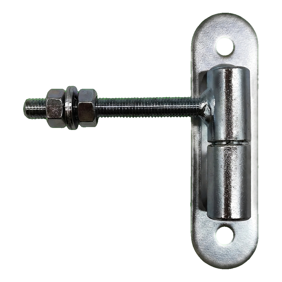 Das verstellbare Rollenscharnier PSG ø24 mit Gewinde M12 ist ein robustes, verzinktes Stahlscharnier für die Montage von Gartentoren und Toren. Dank der Konstruktion mit Gewindeverstellung ermöglicht es eine präzise Einstellung des Torflügels sowohl während der Montage als auch während des späteren Betriebs – eine Einstellmutter genügt, um den durch Belastung oder Temperaturschwankungen verursachten Durchhang zu korrigieren.