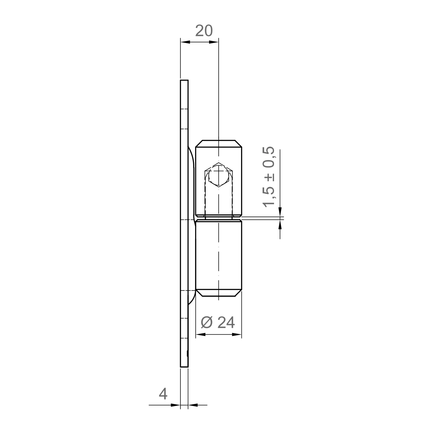 - Abstand der Drehachse von der Montagefläche: 20 mm