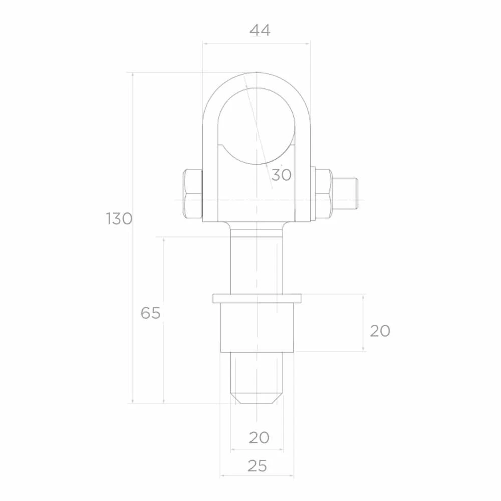- Innendurchmesser des Auges (Öffnung für Bolzen): ø 30 mm
