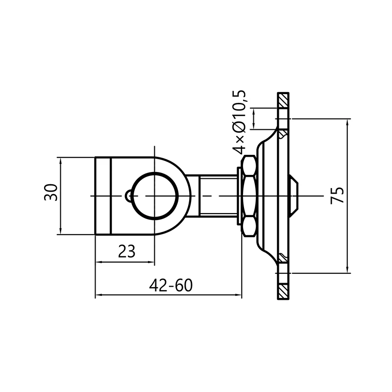 - Verstellbereich Tiefe (vom Schild bis zur Bolzenachse): 42–60 mm