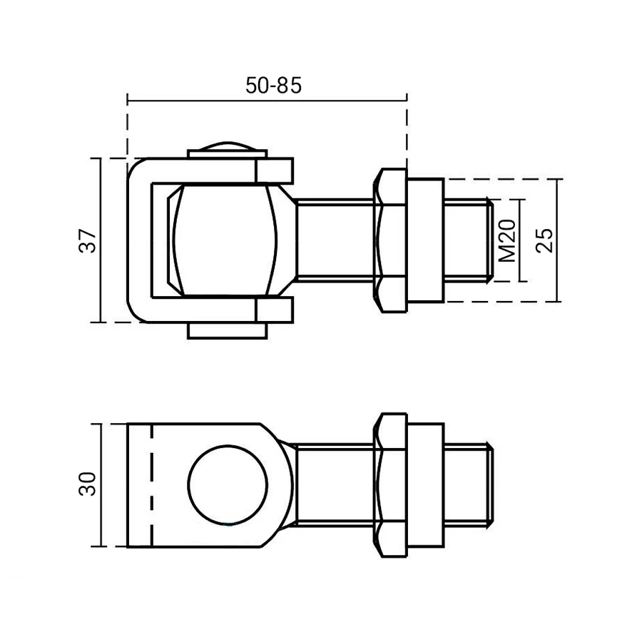 Der Verstellbereich von 50 bis 85 mm gibt dem Installateur große Flexibilität beim Anpassen des Abstands zwischen Flügel und Pfosten. Dadurch kompensiert das Scharnier kleine Schweißungenauigkeiten und Geländeunebenheiten ohne die Notwendigkeit einer erneuten Demontage. Nach Einstellung der optimalen Position sorgt die M20-Schraube für eine starre und stabile Flügelbefestigung und gewährleistet ein reibungsloses Öffnen und Schließen über viele Jahre des Betriebs.