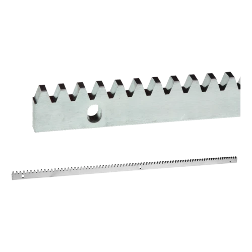 Stahl-Zahnstange PSG für selbsttragende Schiebetore — ein zuverlässiges Antriebselement, das einen gleichmäßigen und leisen Betrieb der Torautomatik gewährleistet. Die Zahnstange mit einer Länge von 1000 mm und einer Dicke von 8 mm ist aus verzinktem Stahl gefertigt, was eine hohe Korrosionsbeständigkeit und jahrelangen Außeneinsatz ohne zusätzlichen Oberflächenschutz garantiert.