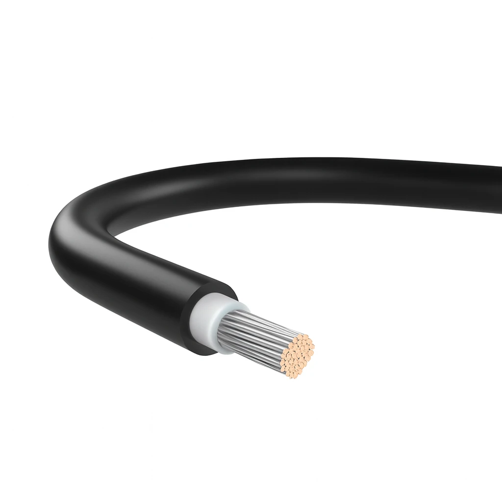 Das Kabel H1Z2Z2-K 10 mm2 ist für Verbindungen zwischen Photovoltaikmodulen, Modulsträngen sowie für Kabelstrecken zum Wechselrichter bestimmt. Der Querschnitt 10 mm2 bewährt sich besonders bei längeren Strecken und höheren Betriebsströmen. Die schwarze Farbe erleichtert die Identifizierung des Pluspols (+) in der DC-Installation.