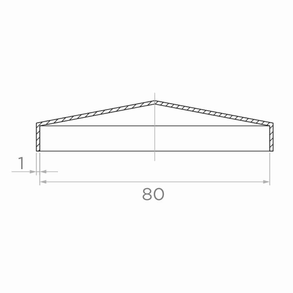 Die Abdeckung wird direkt auf die obere Kante des Zaunpfostens mit den Abmessungen 80×80 mm aufgesetzt. Dank der briefkastenförmigen Form (mit sanftem Giebel in der Mitte) fließt Regenwasser frei zu den Seiten ab, ohne sich auf der Pfostenoberfläche anzusammeln. Dies ist eine einfache und effektive Lösung, die einen der Hauptgründe für beschleunigte Korrosion eliminiert – stehendes Wasser auf der Stirnseite des Profils.