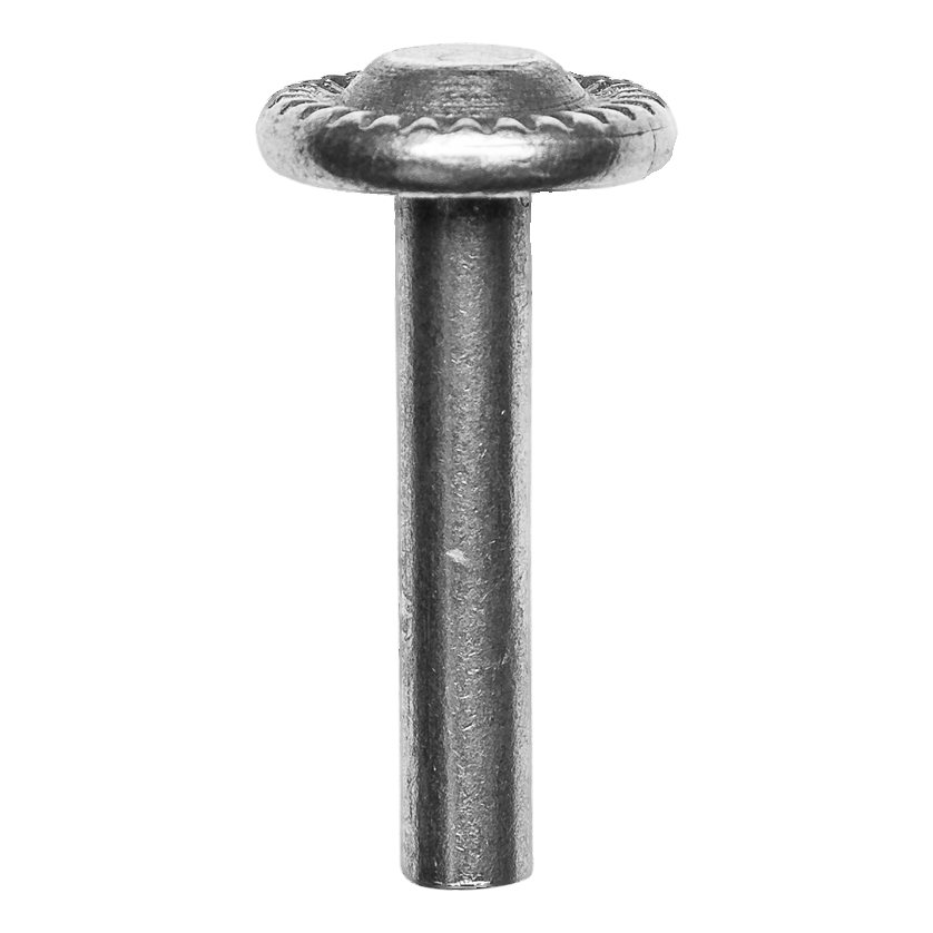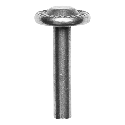 Zierniet aus Stahl Postal bestimmt für dauerhafte, unlösbare Verbindung von Metallkonstruktionselementen mit gleichzeitiger Dekorationsfunktion. Dank der gezahnten Kopfunterlegscheibe setzt sich der Niet sicher im Material fest und verleiht der fertigen Konstruktion einen ästhetischen, geschmiedeten Charakter — ideal für Einfahrtstore, Pforten, Zaunfelder sowie Geländer.