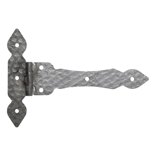 Das dekorative T-Scharnier Postal in T-Form ist ein solides Stahlbeschlag-Element für die Montage an Toren, Gartentüren, Holztüren und anderen Konstruktionen, wo neben der Funktionalität auch die Ästhetik wichtig ist. Die dekorative, gehämmerte Oberfläche verleiht dem Scharnier einen schmiedeeisernen Charakter, ideal für rustikale und traditionelle Stilisierungen.
