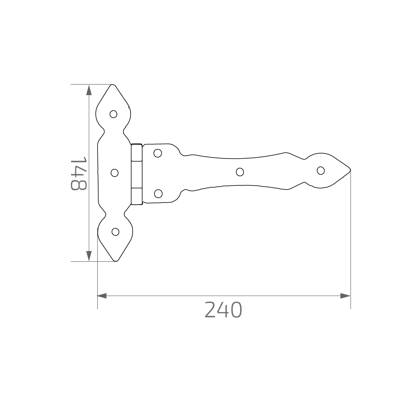 Postal – Zierscharnier T-Scharnier aus Stahl H148 × L240 mm, Stärke 3 mm